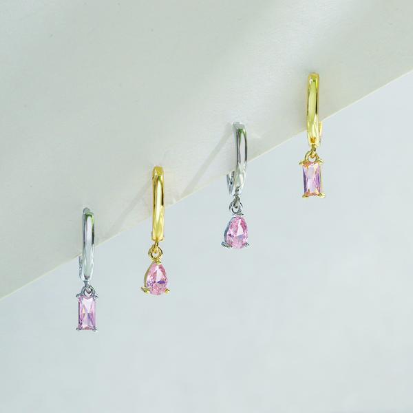 Gold Plated 18K Hoop Earrings Rectangle Water Drop Pink Zircon Diamond Pendant Images |
